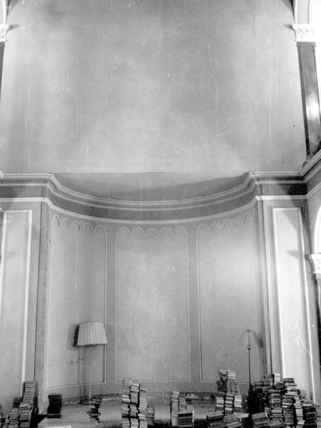 Für diese Nutzung wurde bis 1968 ein aus vier Etagen bestehendes Stahlmagazin in den Kirchenraum eingebaut. Im Zuge dieses Umbaus wurde die Verschalung des Gemäldes abgenommen, um in der ehemaligen Altarnische eine Wendeltreppe zur Erschließung der oberen Magazinetagen einzurichten. Dabei wurde das Engelskonzert übertüncht – und geriet mehr und mehr in Vergessenheit.