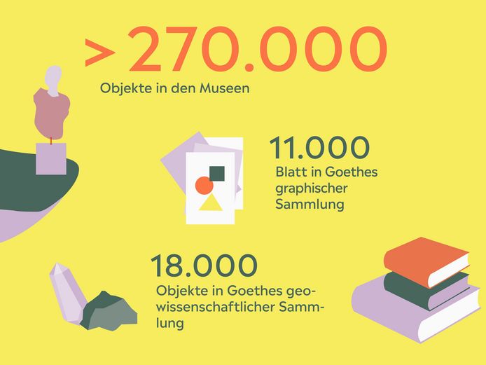 Die Museen der Klassik Stiftung Weimar haben über mehr als 270.000 Objekten die Verantwortung. Viele dieser Sammlungstücke können in unterschiedlichen Ausstellungen betrachtet werden, beispielsweise im Goethe-Nationalmuseum und Goethes Wohnhaus oder aber im Bauhaus-Museum Weimar. Andere werden aus konservatorischen Gründen in Magazinen gesichert und nur auf Anfrage präsentiert, wie beispielsweise im Goethe- und Schiller-Archiv.