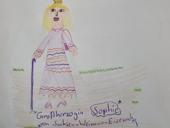 Es war schon zu Beginn des Jahres klar: Jahresprojekt? – Ja! Aber nur wenn das Ganze auch einem breiten Publikum zugutekommt. Da lag natürlich die Ausstellung im Goethe- und Schiller-Archiv zum 200. Geburtstag der Großherzogin Sophie sehr nahe. Eine Frau, die so viel getan hat, auch für das breite Volk, aber trotzdem häufig vergessen wird. Wenn es in Weimar nur so wimmelt von Statuen, welche Männer abbilden, ist es umso wichtiger die Frauen zu würdigen. Bildung fängt früh an. Also warum nicht versuchen Kindergruppen mit solchen Persönlichkeiten bekannt zu machen (natürlich nicht persönlich …) und Ihnen einen neuen Blick auf die Stadt Weimar zu geben? Dafür bin ich mit Kindergartengruppen durch Weimar gelaufen und habe Ihnen verschiedene Sophienorte gezeigt. Abschließend durften die Kinder Porträts von der Großherzogin malen, welche ich als eine Art Diashow für das Foyer im Goethe- und Schiller-Archiv zusammengestellt habe. Ausstellungen mit viel Text nur für ein älteres Publikum? Nicht mit mir. Ein breites Spektrum an Zielgruppen spielerisch, künstlerisch und sensibel an komplexe Themen heranführen? Na, das klingt doch nach einem Plan! Archiv heißt nicht nur viele, staubige Blätter. Wir sind auch ein Bildungsort der von unseren Besuchern, egal ob klein oder groß, lebt und wer sind wir, wenn wir diese Chance nicht nutzen?